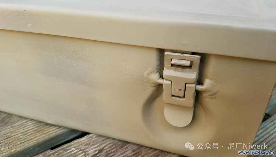 1938年型随车急救箱的锁扣结构,锁扣、提手和搭钮的细节并不调处。