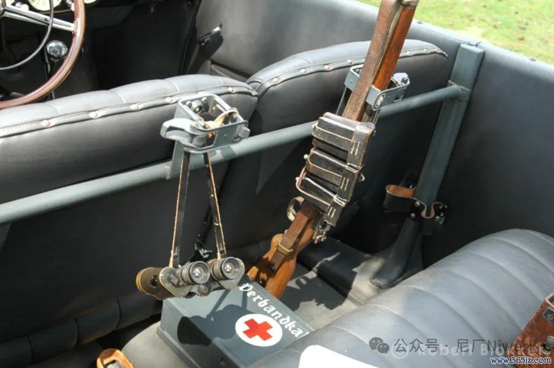 从1937年开动,德军在所有这个词的军用灵活车辆上头加多了车载急救箱(Verbandkasten)这一树立,并成为新车出厂标配。车载急救箱是一种外部尺寸为340x180x100mm的带盖方盒,带有锁扣和提手,箱盖和主体之间用搭钮衔接,箱内被隔板分红一大一小两个区域。