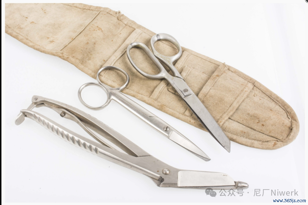 急救箱中的钳子和剪刀放在麻布制成的器械袋子里,有的急救箱只好两种器械,省去了剖解钳和直剪刀之一。