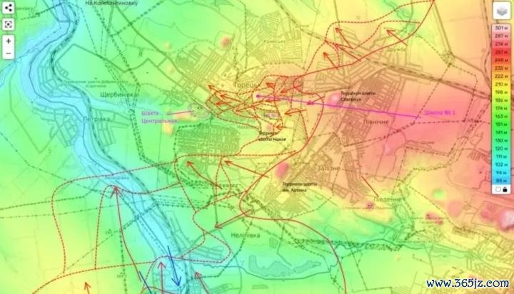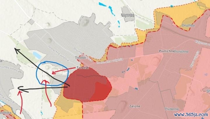 在托列茨克,俄军的地形上风尽头露出:城市东侧较高,西侧较低,使得俄军在要紧时处于有益位置。由于俄军已狂放城区东部和南部的主要高地及巨额高层配置,若Tsentralnaya 矿尽头相近的1号和7号高地被占领,乌军将濒临来自俄军抓续的火力压制,难以保抓阵脚,例必需要赶快撤退,以保全实力,进而可能导致托列茨克战事的完毕。