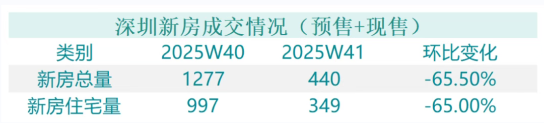 据深圳市房地产信息平台数据,2025年第41周密市新址(预售+现售)成交量受双节假期影响波动变化。